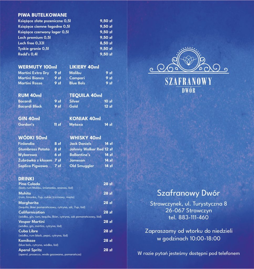 Nasze menu zawiera dania kuchni regionalnej, znajdującej się na Świętokrzyskim Szlaku Kulinarnym, przygotowane z produktów pochodzących od lokalnych dostawców.